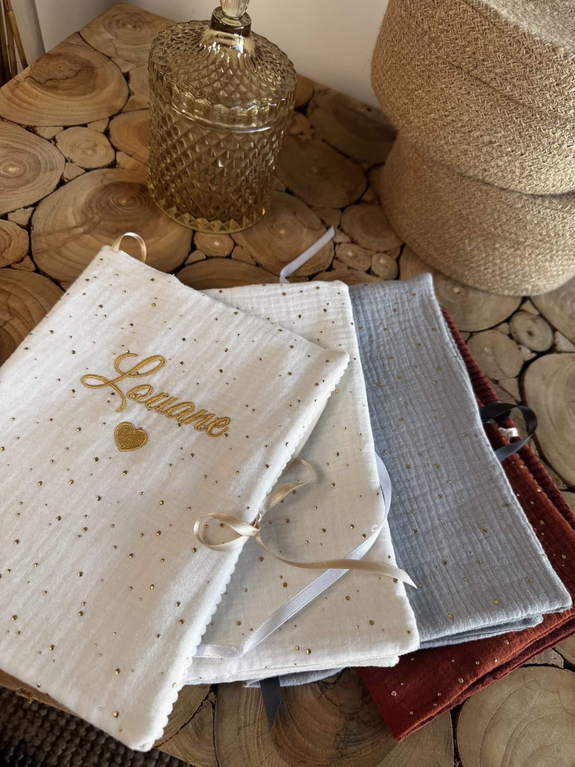 Parure bébé - Plaids + pochette + Coussin Velours