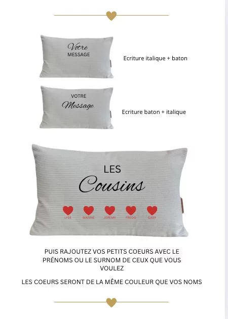 Créez et commandez votre coussin de famille personnalisé. Offrez un objet qui sera cher à votre coeur où les prénoms de ceux que vous aimez ont brodés avec amour. Ce coussin est plus qu’un simple objet de décoration, c’est un symbole de l’amour.