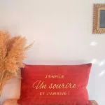 Coussin terracotta – J’enfile un sourire et j’arrive